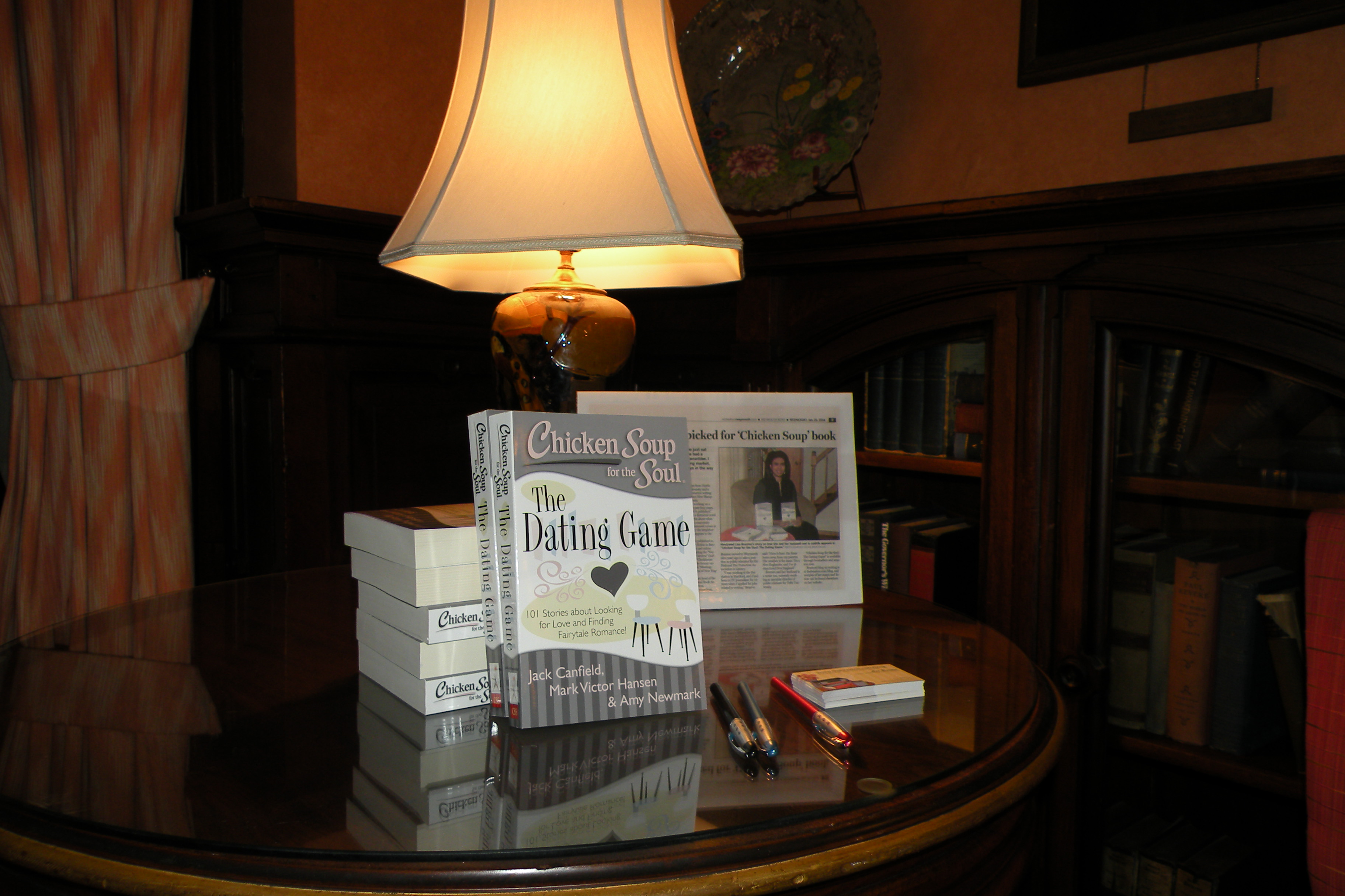 Also, in a drawing I gave away a copy of Chicken Soup for The Soul: The Dating Game, in which one of my stories–“Short Distance Romance”– was published.